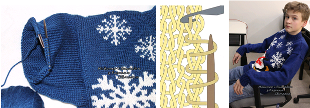 рукава прибавляем 8 петель (16:2=8), с левой стороны рукава прибавляем также 8 петель.